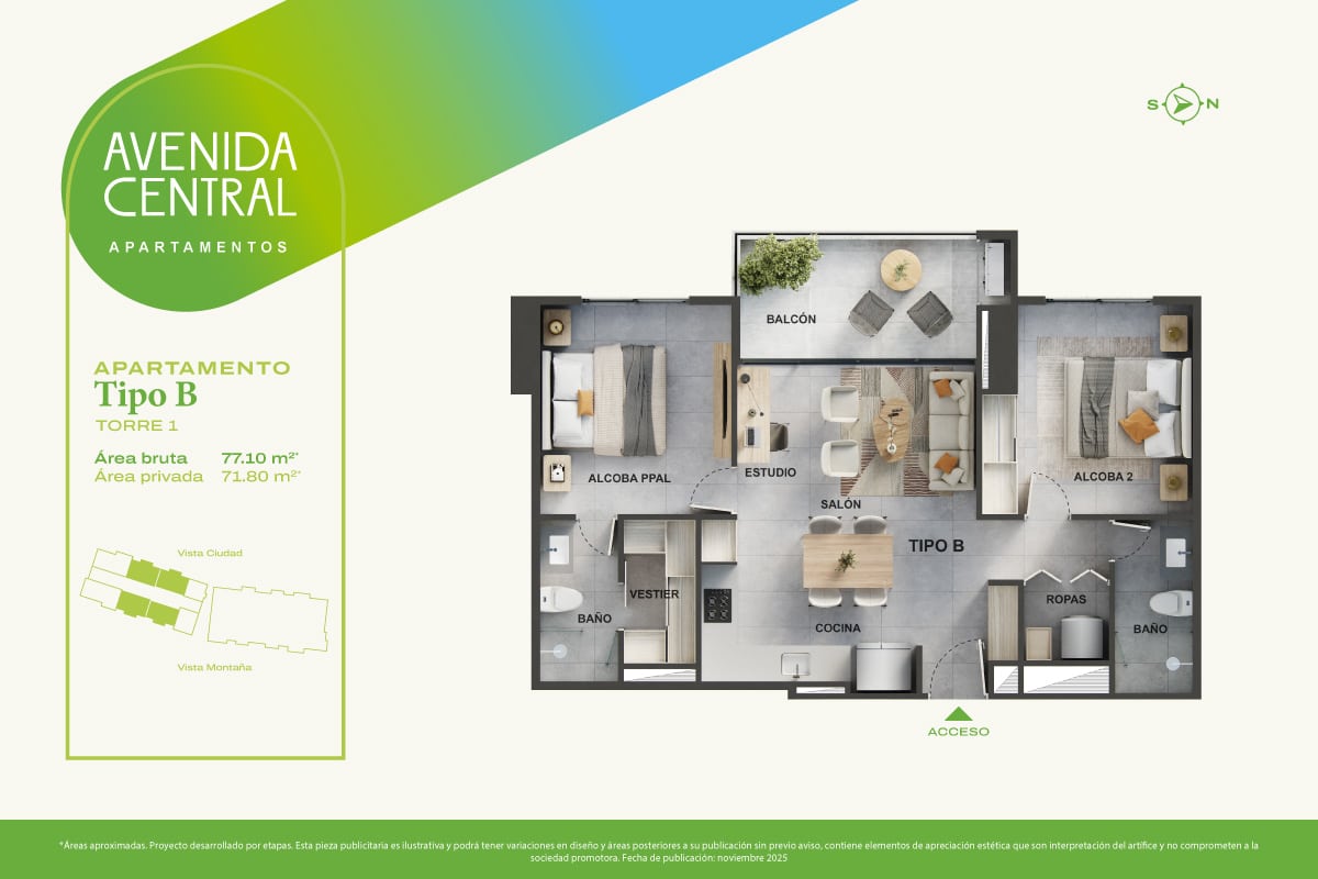 TÉRMINOS y CONDICIONES: Las imágenes, disponibilidades, áreas, especificaciones y generalidades que se publican en este medio podrán tener variaciones posteriores a la fecha de publicación. Por lo anterior, sugerimos corroborar los datos en la sala de negocios antes de suscribir un contrato con la sociedad promotora.